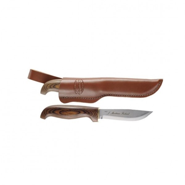 Acest cuțit cu lamă din oțel inoxidabil de 11 cm gravată și atașată la mânerul ergonomic din lemn stratificat. - Lungime lamă 11cm - Teacă din piele - Lamă oțel inox