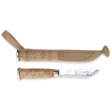 Mânerul de cauciuc și protecția degetului asigură o aderență sigură și fermă în cele mai solicitante condiții. Acest cuțit este livrat cu o teacă de plastic practică.