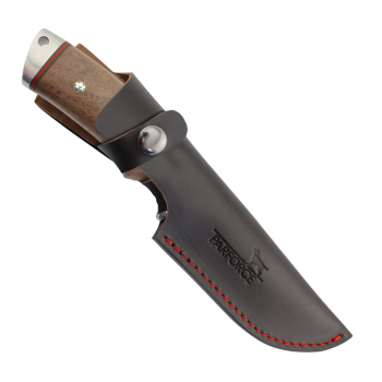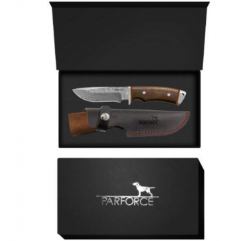 Cuțitul Parforce Damasc Pecora nu este doar un obiectiv pentru colecționari, ci și un adevărat instrument de lucru. Este un partener fidel chiar și pentru utilizare solicitantă. Lama lungă de 11,2 cm este realizată în stilul Damasc. Garda transversală și capătul mânerului au fost realizate din oțel inoxidabil. Plăselele din nuc cu finisaj cu incrustații roșii contrastante completează imaginea de ansamblu. Un punct culminant vizual sunt niturile decorative, care sunt montate în alamă.