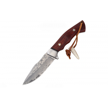 Un cuțit de vânătoare elegant, robust, cu cel mai atractiv design. Lama în stil Damasc, mâner cu protecție pronunțată pentru deget. Teacă din piele de calitate foarte bună.