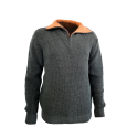 Pulover gros de vânător, culoare verde, gulerul cu dublură orange. - Material 30% lână, 70% acril