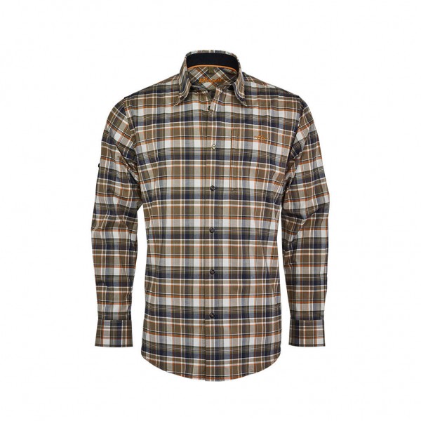 Cămașă cu mânecă lungă. Croială modernă, buzunar la piept cu fermoar ascuns, mâneci roll-up cu nasture de prindere. Broderie ARGALI.