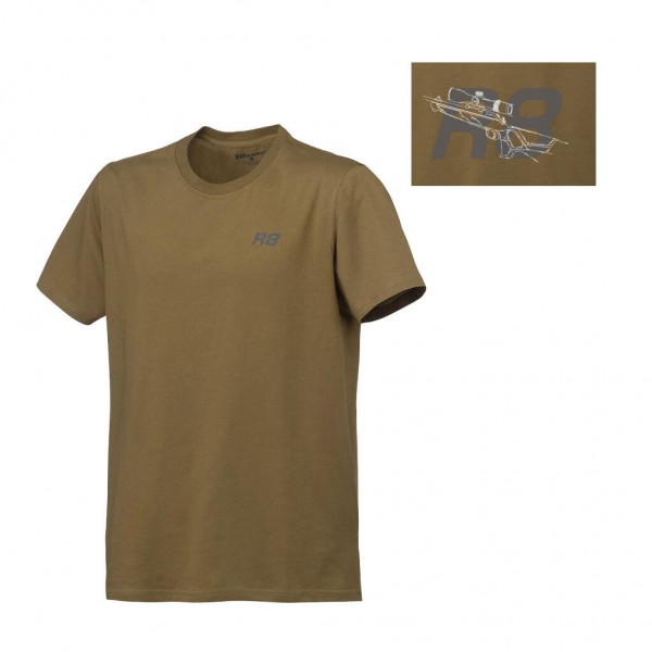Tricoul este făcut pentru toți fanii carabinei Blaser R8. Print-ul generos de pe spatele acestui tricou cu guler rotund este ceea ce atrage atenția. Pe față este un print discret cu logo-ul R8. Este fabricat din bumbac de înaltă calitate și este disponibil în mai multe culori.