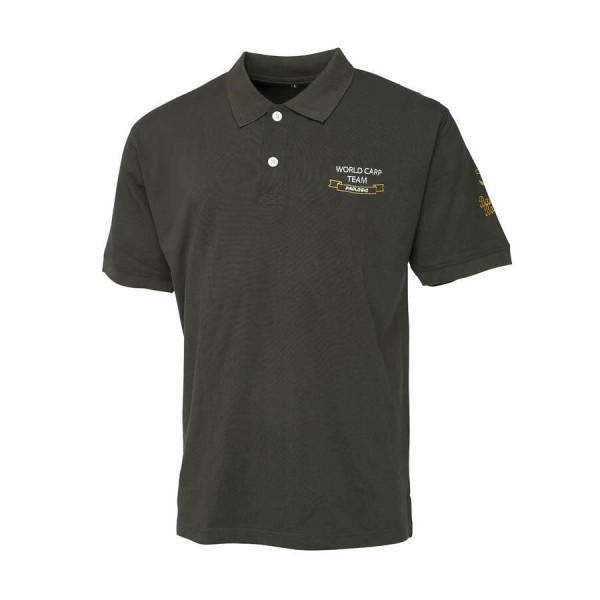 Tricou polo de calitate, moale, cu logo-uri frumoase în piept, spate și mânecă • Material poliester / bumbac, 200 g / m2 • Broderia World Carp Team în piept • Imprimeu pe spate și mânecă