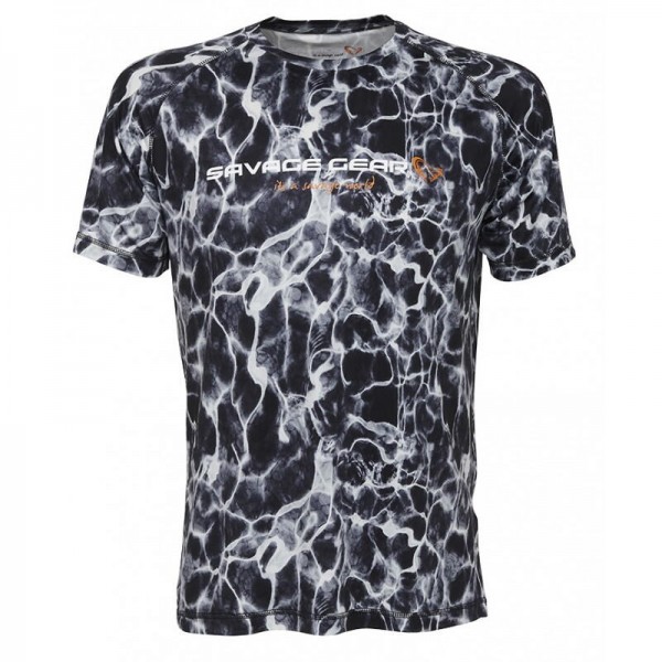 Tricou Savage Gear Night UV - protejeaza-te de soare și arată bine în același timp. Tricoul elegant, negru și gri, confecționat din material elastic de înaltă calitate, asigură confortul pe tot parcursul zilei.