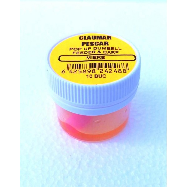 Pop Up-urile Claumar Dumbells sunt momeli special create pentru a putea fi folosite in banda pentru pelete sau pe firul de par. Au forma de Clepsidra ( bombat la capete si un diametru mai redus pe centru) ceea ce rezulta intr-o priza excelente cu benzile pentru pelete din Latex. Acestea sunt indicate a fi folosite in monturi fir de par si cele mai bune rezultate se obtin abordand partida cu momitoare de tip Method Feeder.