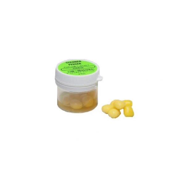 Flotabilitatea sa echilibrează greutatea cârligului. Porumbul artificial este o momeală revolutionară în pescuitul ciprinidelor, acestea se pot refolosi.