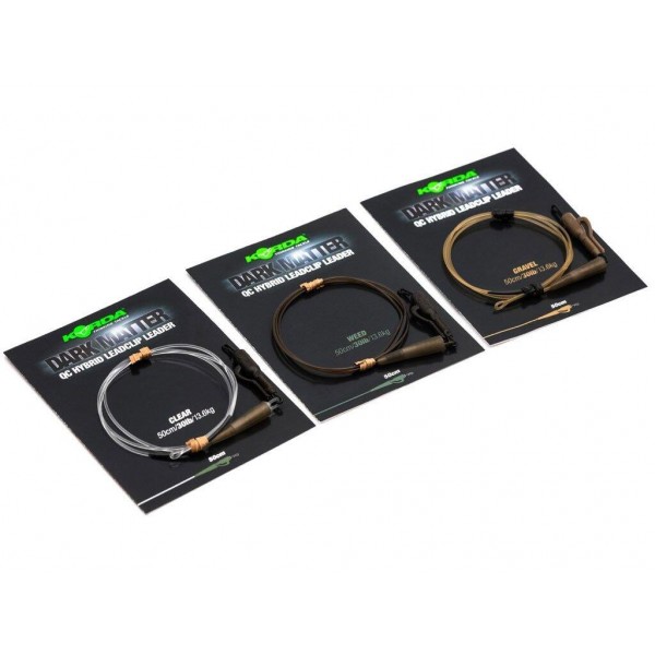 Gama noastră populară de leader Dark Matter a fost extinsă pentru a include clema de plumb Dark Matter Leader QC Hybrid Lead Clip. Această versiune vă permite să vă schimbați leader-ii în cel mai scurt timp. Leader-ii Dark Matter au încorporat, de asemenea, segmente speciale de tungsten. Se asigură că leader-ul se aseaza pe structuri urmarind forma acestora. Leader-ii Dark Matter este, de asemenea, disponibil în două lungimi diferite (50cm, 100cm). Versiunea scurtă a Dark Matter Leader este potrivită în special pentru pescuitul la distanță sau pentru reglementări care necesită o lungime maximă a leader-ului.