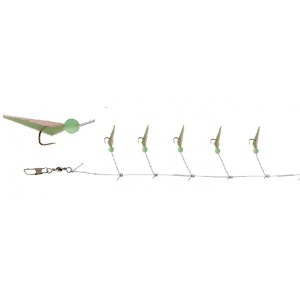Montură Herring „Micro“ with „real fish skin“ Cu 5 cârlige, șirag de mărgele strălucitoare și piele de peşte real Japanese. Perfect pentru prinderea anghilei. Linia ø: 0,30 / 0.20mm