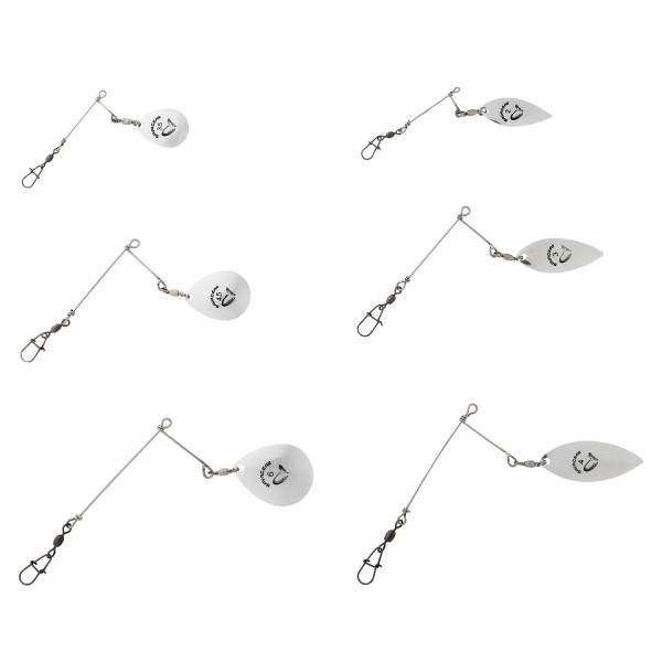 Paletele spinnerbait originale Savage Gear, care vă pot transforma năluca într-un stil spinnerbait în câteva secunde. Clemă ușoară pe braț, cadru din oțel inoxidabil, cu lame subțiri din oțel placat, care se rotesc imediat pe un vârtej cu rulment cu bile. Pachete de 2 bucăți, o lamă frunză de salcie și una model Colorado.