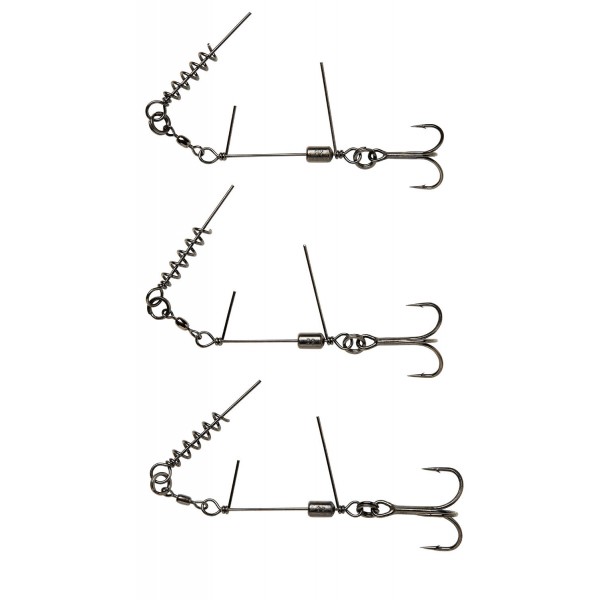 Monturi tip corkscrew perfecte, cu sârmă și v\rtej din oțel inoxidabil, pentru durabilitate și rezistență. Știfturi drepte, pentru reținere și eliberare perfectă a nălucii. Lestul de pe burtă de 3g din aliaj, este dedicat pentru echilibrul perfect al nălucii soft de talie mare, cum ar fi River Roach, Goby Shad, Herring Shad etc.