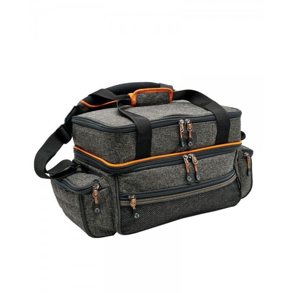 Concepută pentru transportul generos de echipamente, inclusiv articole mai mari. Cu două compartimente principale, de sus și de jos, compartimentul inferior oferă o capacitate de 38cm x 25cm x 15cm, în timp ce partea de sus are pereți despărțitori mobili pentru a adapta spațiul de stocare. Două buzunare laterale generoase și un buzunar subțire cu fermoar pe lungime sunt ideale pentru acele accesorii suplimentare. Partea inferioară a bazei este impermeabilă, întărită cu colțuri de prindere dure. Dispune de mânere și curea de transport.