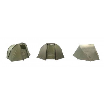 Fabricat folosind un naterial îmbunătăţit 190 D nailon, toate corturile din gama nouă Bivvy CRUZADE au caracteristici excelente în ceea ce priveşte impermeabilitatea, rezistenţa şi durabilitatea datorate în principal procesului special de dublă acoperire. Ambele variante de cort bivvy (de una sau două persoane) sunt dotate cu acoperire OVERWRAPpentru a fi pregătit chiar și pentru cele mai dificile condiții de vreme.