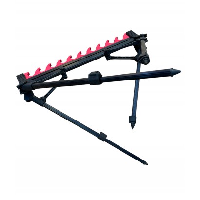 Suport pentru lansete de rezerva mare si stabil, cu patru picioare telescopice reglabile si 10 posturi pentru sustinerea lansetelor.