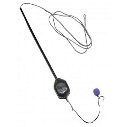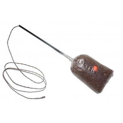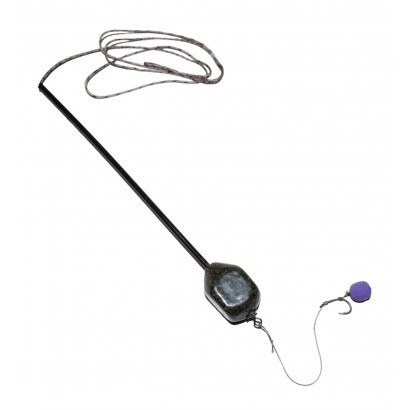Montura este gata pentru lansat (vine completa cu punga solubila incarcata cu micropelete si pop up pe spinul pentru momela)