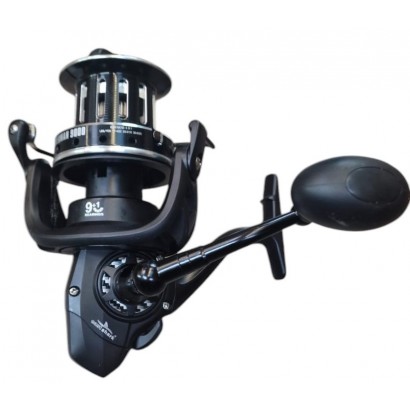 Mulineta Fisherman 9000 ce are o forta de franare de 20kg (frana discuri carbon) poate fi folosita atat pentru pescuitul crapului cat si pentru somn.