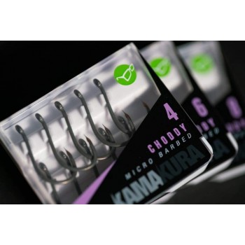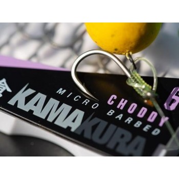 Cârligul Korda Kamakura Choddy este ascuțit după producție la o toleranță extrem de ridicată. Acest model de cârlig este conceput pentru a fi utilizat cu fluorocarbon și legături rigide pe monofilament precum Korda Mouthtrap.