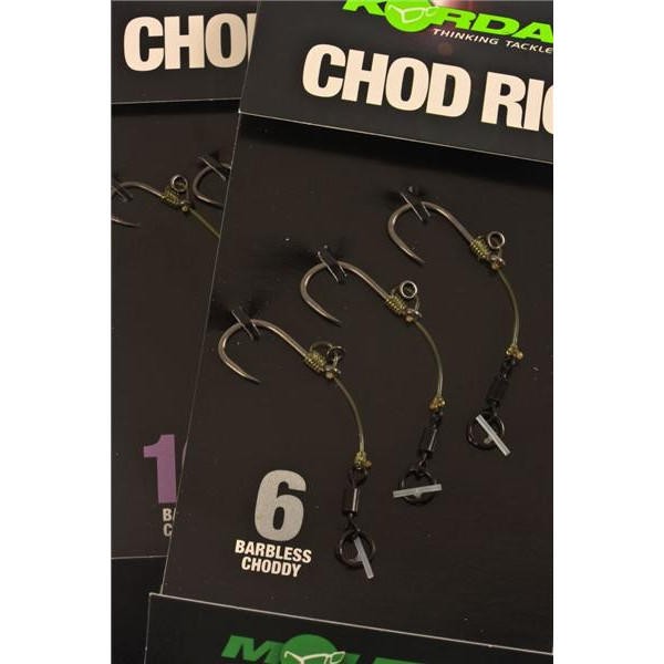 Monturile Korda Chod sunt legate cu precizie folosind componentele MutTrap și Choddy de 25 lbs.