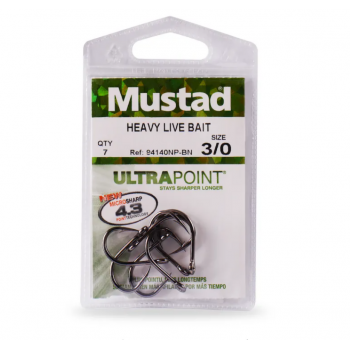 Mustad Live Bait Hook este un cârlig super puternic dedicat pentru momeli vii, care vă va crește rata prezentărilor și va aduce mai mulți pești în barcă. Tija puternică (3X) și tehnologia de scuțire 4.3 UltraPoint® Technology sunt perfecte pentru exemplarele mari, cum ar fi Wahoo, Grouper, Snapper, Roosterfish, Amberjack, Mahi Mahi/Dorado, Marlin, Sailfish, Skipjack sau ton. Cârligul are o tija dreaptă și un vârf îndoit pentru capacitate mare de agățare. Acoperire Black Nickel Mustad, care este de 4 ori mai rezistent la rugină decât acoperirea tradițională.