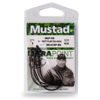 Cârligele dedicate nălucilor din plastic moale Grip-Pin® au un știft din rășină turnat care fixează în siguranță o gamă largă de năluci soft. având un design „no slip, no slide”, fără a rupe momeala. Cârligul având curbura largă este alegerea ideală pentru o gamă largă de năluci soft. Tija puternică 1X este o bază excelentă pentru pescuitul în apropierea pragurilor și a vegetației. Folosiți-l pentru a prinde bass, biban, păstrăv prun, păstrăv curcubeu, șalău, știucă. Acoperit în finisajul de Black Nickel Mustad, care este de 4 ori mai rezistent la coroziune decât nichelul negru tradițional.