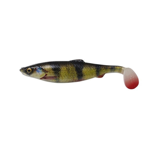4D Herring Shad, are mai multe caracteristici actualizate. Partea frontală puțin mai groasă, oferă o mai bună opțiune de fixare a capului de jig și de utilizare a sistemelor corkscrew. Ochii moi nu se pot desprnde și a fost adăugată o fantă în coadă pentru adăugarea unui slot cu bile. Profilul de hering zvelt, cu acțiunea de flancare mortală combinată cu cu imprimeul perfect Photo Chrome o recomandă ca nălucă incredibilă și eficientă!
