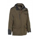 Jachetă 3 în 1, versatilă, flexibilă, impermeabilă și respirabilă. 85% poliester, 15% poliamidă. Membrană laminată impermeabilă. Aplicație anti recul detașabiă. Întărită cu material rezistent la nivelul umerilor și a brațelor. Glugă detașabilă, buzunare cu încălzitor de mâini, buzunar pentru radio, două buzunare speciale cu câte 2 rânduri pentru cartușe, buzunar pe mânecă cu fermoar impermeabil, 3 buzunare interioare cu fermoar. Buzunar special pentru vânat la spate, căptușit cu PVC și detașabil din 3 direcții. Jachetă microflece detașabilă 100% poliester, 350 g/m².